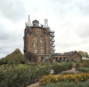 De eerste aanblik was al prachtig. Zo’n mooie oude watertoren omgebouwd naar een hotel. We liepen eerst door de winkel waar de lekkere geuren van vers gebakken desembrood ons al tegemoet kwamen. Er stond divers gebak, cadeautjes voor diverse mogelijkheden, leuke kaarten, mooie boeken, puzzels, noem het maar op.
